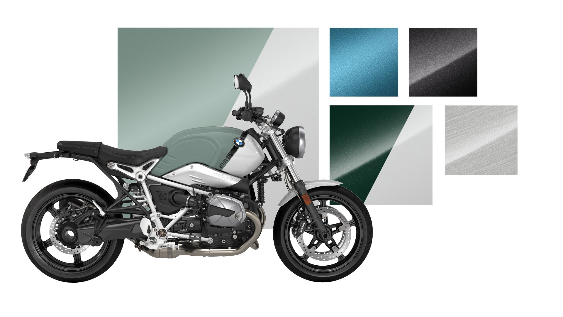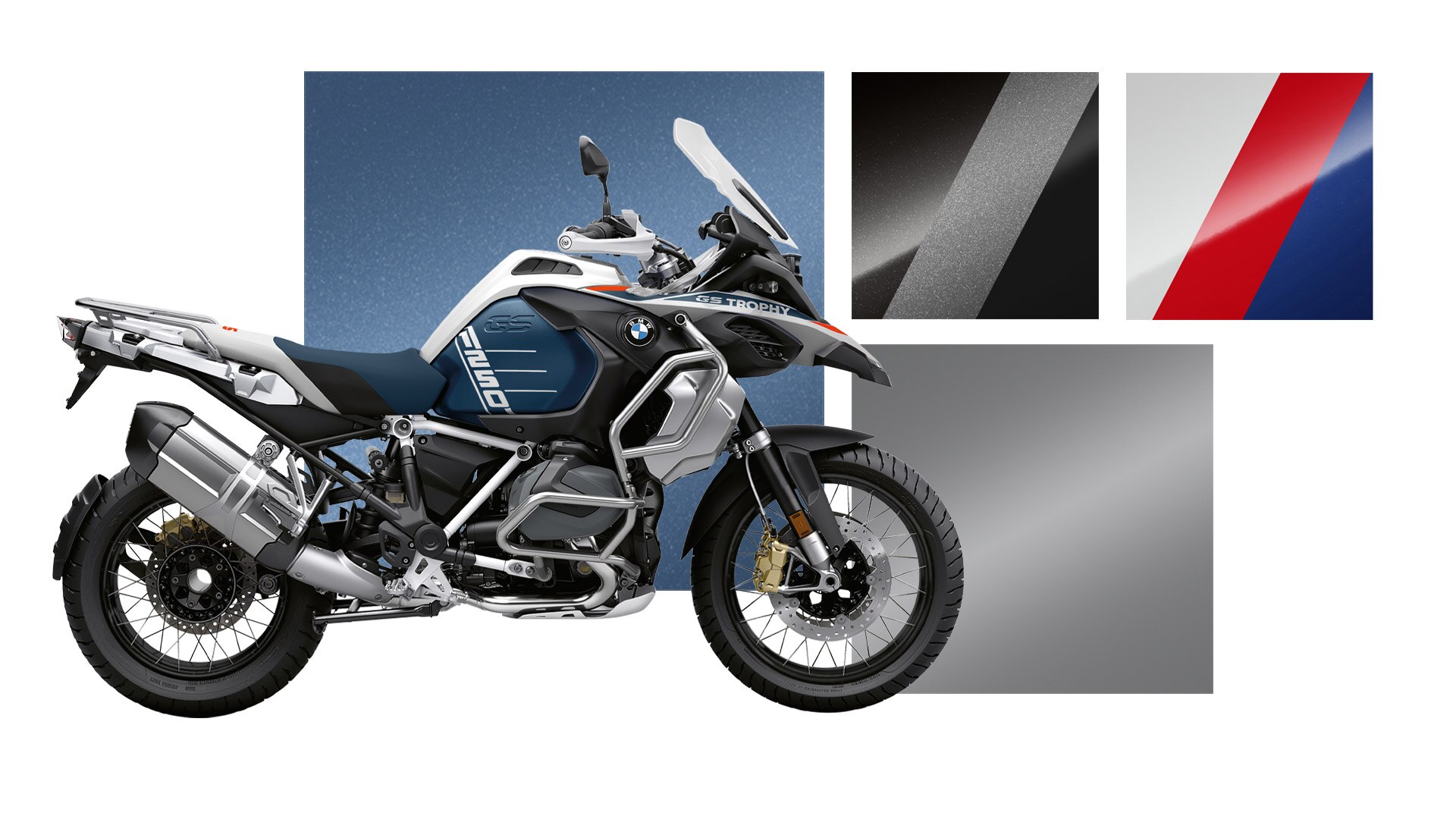 A Option 719 em mineral branco metalizado acentua as grandes superfícies da respetiva moto e sublinha a sua aparência elegante. As acentuações em dourado realçam com precisão os destaques das motos. Harmoniosa, equilibrada e atrativa: com a seu esquema de cores em azul "gravity" metalizado, a moto irradia verdadeira grandeza e supremacia.