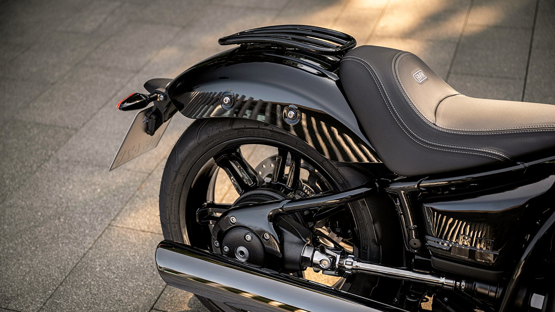 O novo estilo “Blacked Out” oferece um acabamento cromado escuro e atraente para sua moto, dando a ela uma aparência exclusiva. Os destaques em preto atenderão até mesmo os mais altos padrões de individualidade e modernidade.